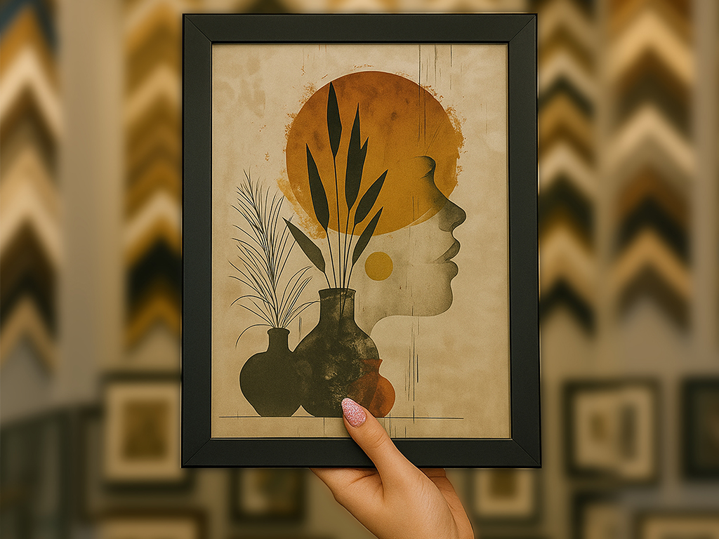 Black A4 frame with custom design under high-quality glass